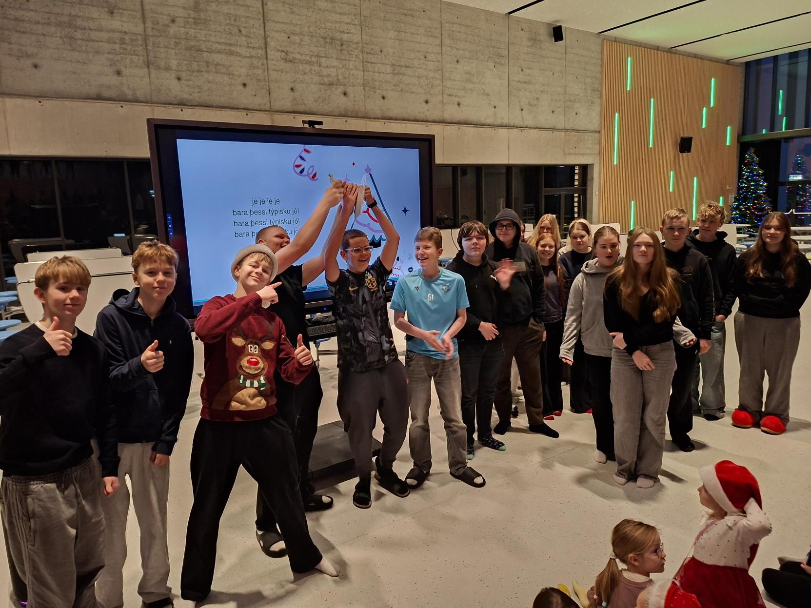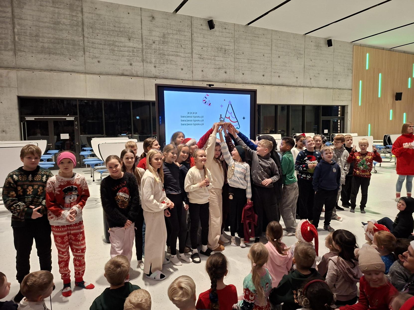 Það er skemmtileg jólahefð hjá okkur í Stapaskóla að nemendur skreyta gluggana í tvenndinni sinni. Keppt er á milli árganga og eru sigurvegarar á hverju stigi. Gluggarnir eru hverjum öðrum glæsilegri og hefur verið erfitt verk fyrir dómara að velja fallegasta gluggann. Dómararnir okkar í ár voru Ellen Agatha frá menningasviði Reykjanesbæjar, Guðrún Gunnarsdóttir deildarstjóri í Akurskóla og Katrín Jóna deildarstjóri í Akurskóla. Það var þeirra hlutverk að ganga á milli og gefa stig fyrir sköpun, frumleika og jólaanda. Nemendur í 2. bekk, 5. bekk og 9. bekk unnu jólagluggann 2025.