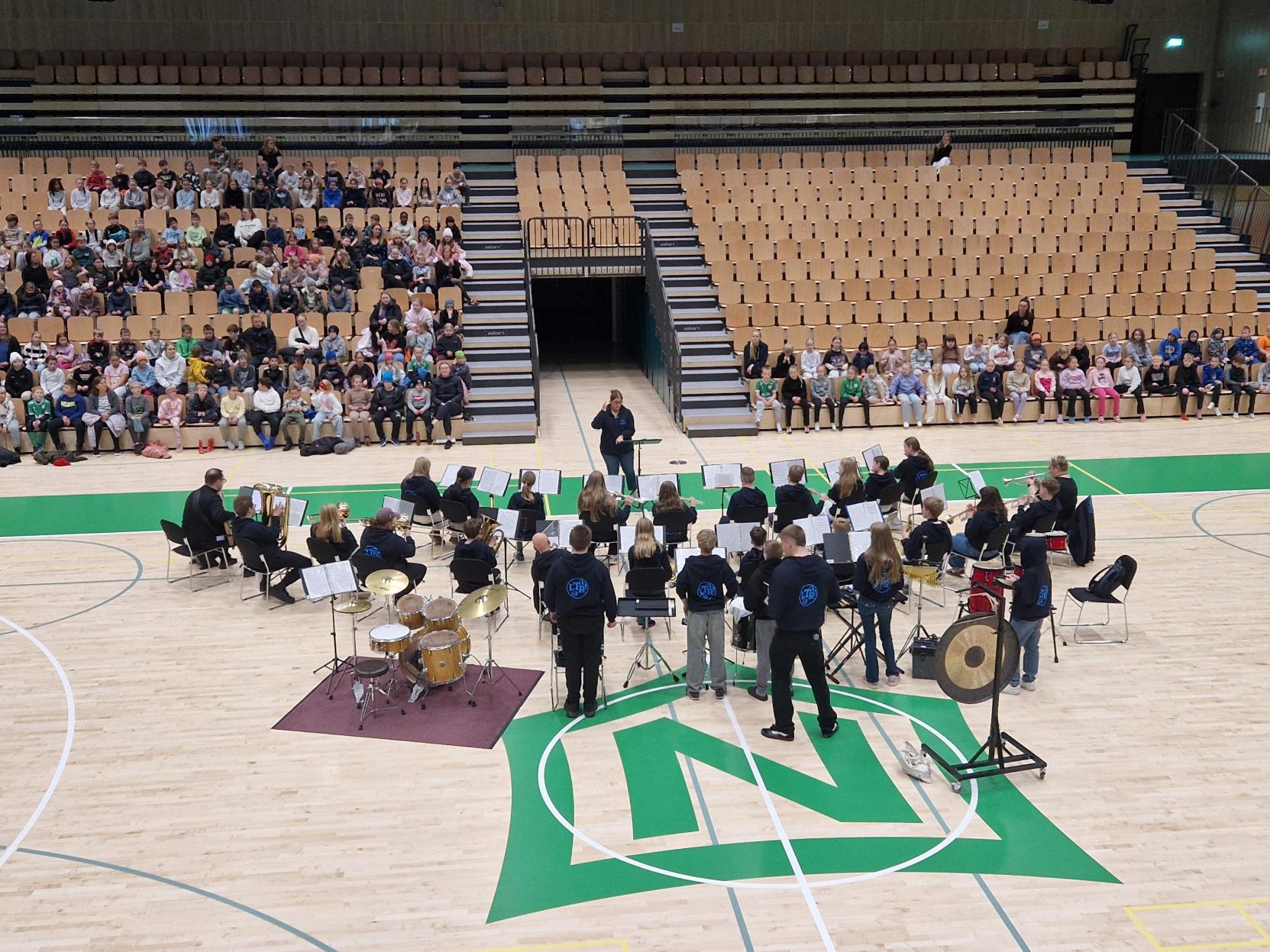 Lúðrasveit Tónlistaskóla Reykjanesbæjar hélt skemmtilega tónleika og hljóðfærakynningu fyrir nemendur í 3., 4. og 5. bekk Stapaskóla í íþróttahúsi skólans. Nemendum í sömu árgöngum í Akurskóla var einnig boðið að koma og njóta tónleikanna.